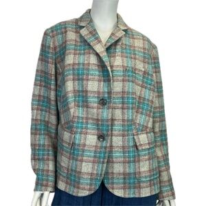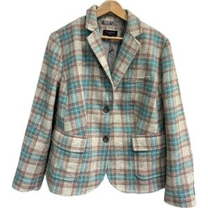 Talbots Woman Shetland Plaid Wool Blend Blazer Size 16W