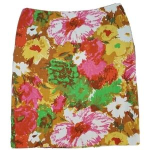 Talbots ~Woman Size 10Petite~ Pink/Yellow Floral Cotton Skirt Lined NWT $89.50