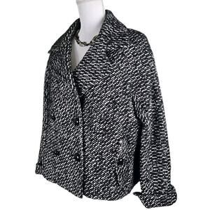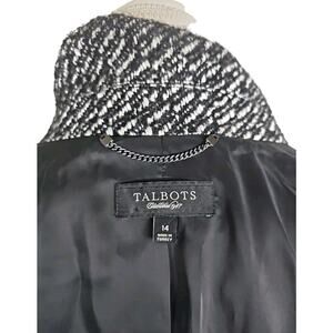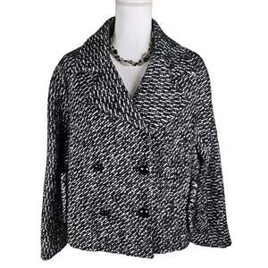 Talbots ~Woman Size 14~ White/Black Crop Jacket Wool Blend Boxy Coat Outdoore.