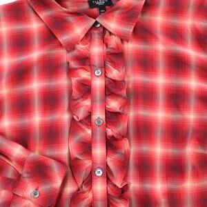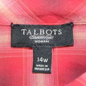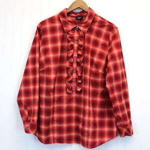 Talbots Woman Size 14W Plaid Blouse Ruffle Front Red Beige Plaid Prairie Modest