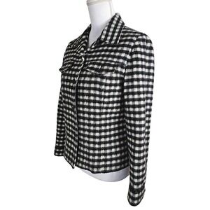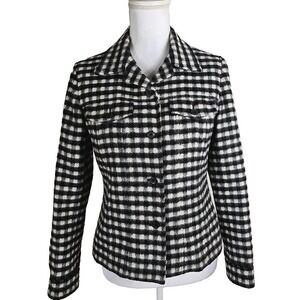 Talbots ~Woman Size 6 Petite~ White/Black Plaid Print Wool Blend Jacket Blazer.
