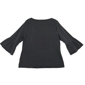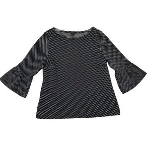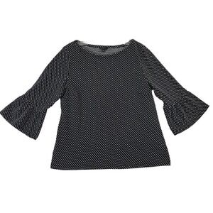 Upgrade your wardrobe with this exquisite Talbots black and white polka dot sweater. This pullover sweater features a boat neckline and 3/4 bell sleeves, making it perfect for any occasion - from casual outings to workwear and even parties or cocktails. The stretchy cotton blend fabric ensures a comfortable and flattering fit for women in size PL.