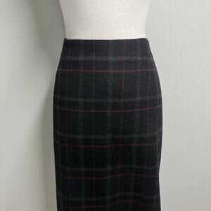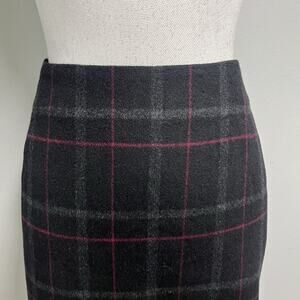Talbots Woman Skirt Plus size 18W Black Pink Plaid Wool Knee Career Preppy Slim