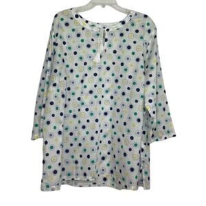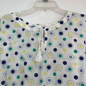 Talbots Woman white blouse with blue green yellow circle decor Size 3X