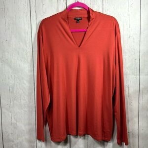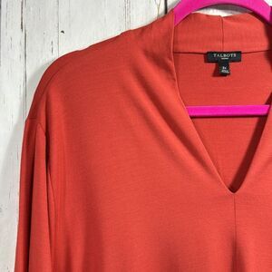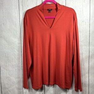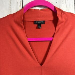 Talbots Woman High V Neck Top Stretch Minimalist Casual Orange Soft Top