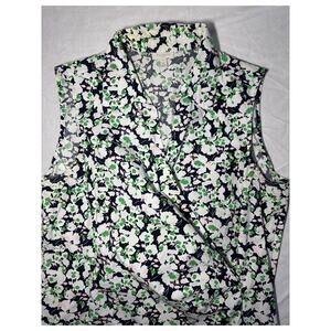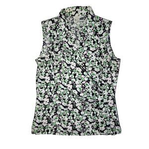 Talbots Woman's Floral Sleeveless Faux Wrap Front Tank Blouse Size Medium