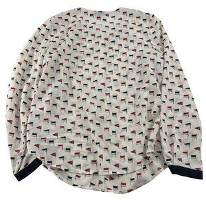 Talbots Womans Nautical Flag Print Blouse Size 12P Long Sleeve Polyester