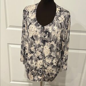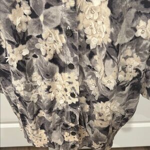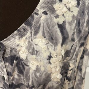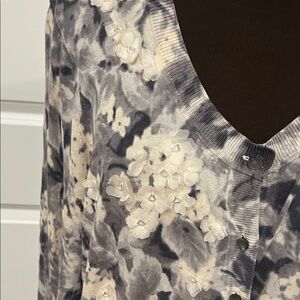 Talbots Woman’s Petite Gray Cream Floral Silk Blend Cardigan Size 3XP