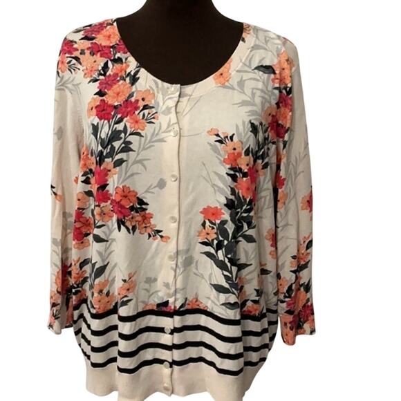 Talbots Woman’s Petites Floral Cream Cotton Blend Sweater Cardigan Size 3XP