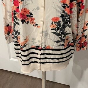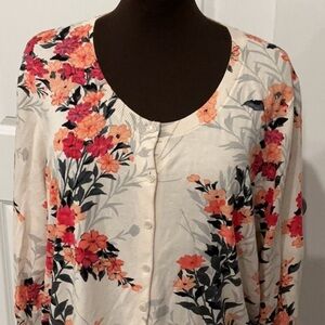 Talbots Woman’s Petites Floral Orange Cream Cotton Blend Cardigan Size 3XP