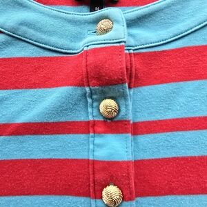 Talbots Womans Red and Blue Striped 3/4 Sleeve Cotton Shirt . With Gold Buttons