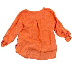 Talbots Woman's Top LP Petite Orange 100% Linen Long Sleeve Button Detail