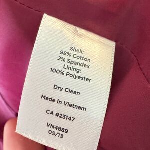 • Material: Shell – 98% Cotton, 2% Spandex; Lining – 100% Polyester