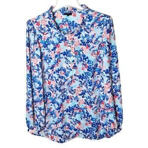 Talbots Women 1x Multi- colored Floral Balloon Sleeve Ruffle Blouse