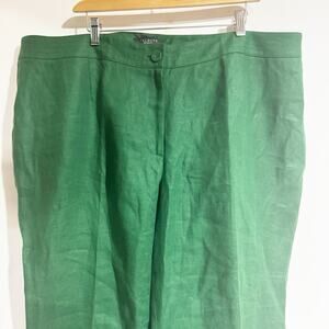 Talbots women size 22W 100% pure Irish linen green heritage pants 23 inches waist flat 12 1/2 inches rise 26 inch inseam no flaws found