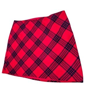 Talbots Women 22W PETITE Wool Blend Plaid Skirt Red Black Side Zip. Holiday Cottagecore