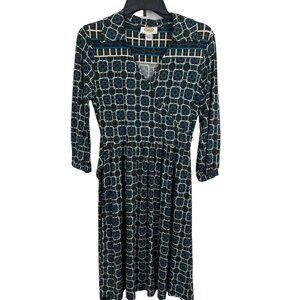 Talbots Women 3/4 Sleeve Pullover V Neck Print Dress Size 4