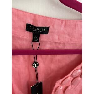 Talbot's Women 3X Petite Pink Linen Tunic Embellished V Neck Blouse NEW