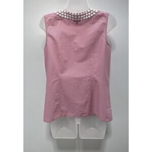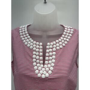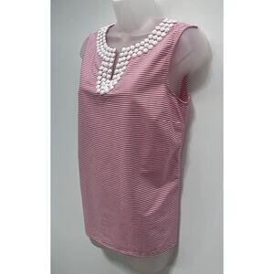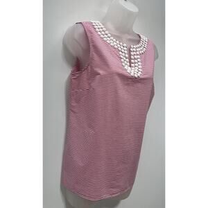 Talbots Women 6 Large Pink White Striped Beaded V-Neck Sleeveless Top Stretch