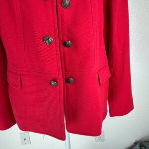 Talbots Women 6P Red Military Jacket Cotton Blend Buttons Twill Classic Holiday