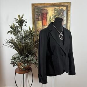 Talbots Women Black Jacket 12P Long Sl Collar Notch Clueless Preppy Office Siren