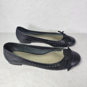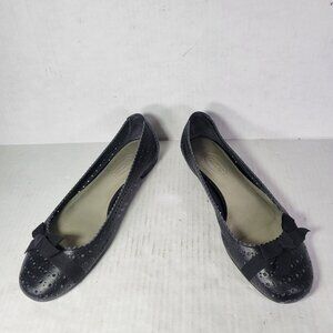 Talbots Women Black Leather Perforated Ballet Flats With Bow Accent Size 7.5