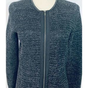 Talbots Women Black W/White Speckles Zip Cardigan SP