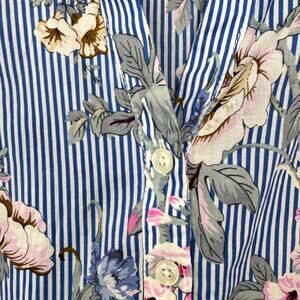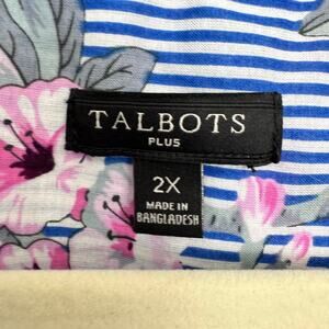 Talbots Women Blouse Top Size 2X 100% Cotton Floral Lightweight Classic Blue