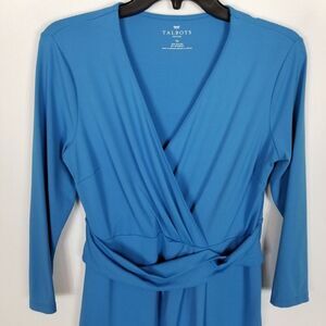 Talbots Women Blue Faux Wrap Dress Mini Dress Size S Petite 3/4 Sleeve