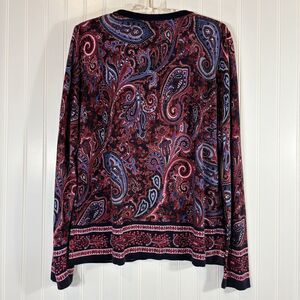 Talbots Women Cardigan Button Up Size L Navy Paisley Office Holiday Preppy Artsy