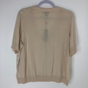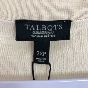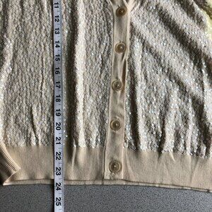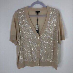 Talbots Women Cream Sequin Button Up Short Sleeve V-Neck Cardigan Size 2XP NWT