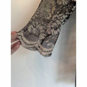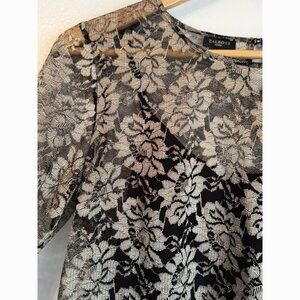 Talbots Women Lace Overlay Top Sz 10P Black Gold Scallop Holiday Glam Old Money