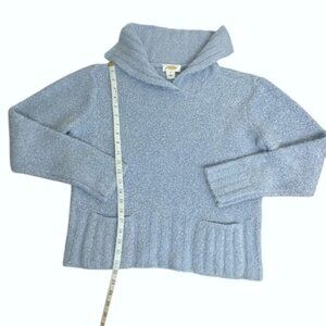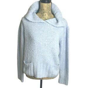 Talbots Women Light Blue Open Cowl Neck Pullover Sweater Pockets Ribbed Hem Sz M