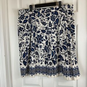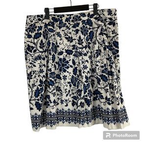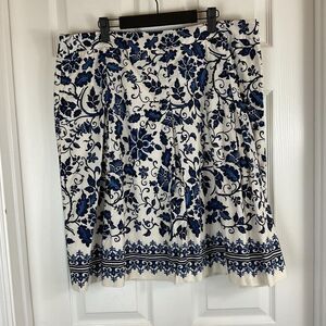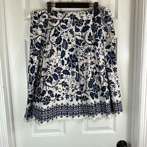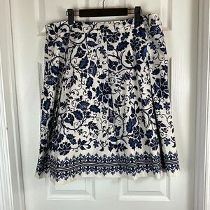 Talbots Women Navy Blue White Floral Skirt Lightweight Cotton Pleated A Line H2