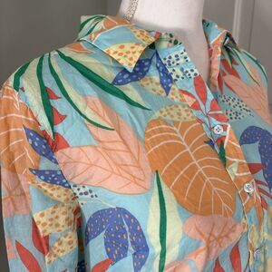 Talbots Women Pastel Floral Tropical lightweight Cotton Button Up Shirt Small