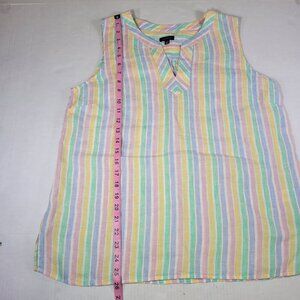 Talbots Women Pastel Multi-Color Striped Linen Sleeveless Tunic Top Size M
