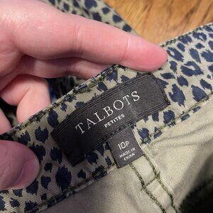 Talbots Women Petite Sz 10P Navy Blue/Green Animal Print Signature Casual Pants