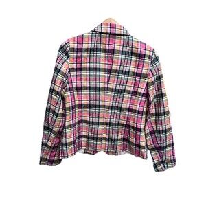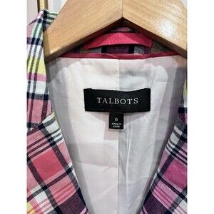 Talbots Women Pink Plaid Blazer Jacket Linen Cotton Collared Button Pockets Sz 6