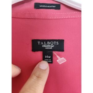 Talbots Women Pink "Wrinkle Resistant" Cotton Button Down Long Sleeve Shirt 14W