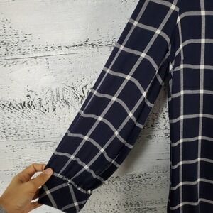Talbots Women Plaid Pullover Blue Long Sleeves Collarless Top Small Petite