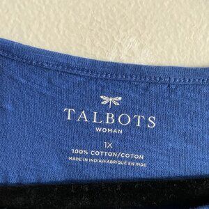 Talbots Women Plus Sz 1X Royal Blue Pintuck Pleated Embroidered Trim S/S Top