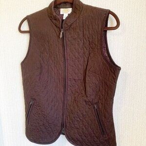 Talbots Women Quilted Vest Jacket Small Brown Zip Pocket Minimalist Full Zip