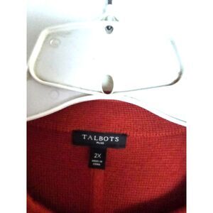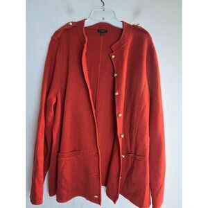 Talbots Women Red Merino Wool Knit Gold Button Cardigan Sweater size 2X
