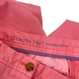Talbots Women SZ 6P Relaxed Chino Pants Pink Cotton-Blend Slash Pockets