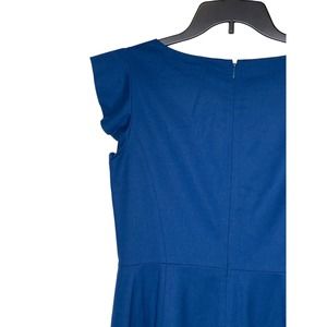 Talbots Women Sheath Dress Italian Flannel Wool Flutter Sleeve Minimalist Blue 8