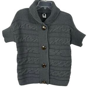 Talbots Women Short Sleeve Chunky Cable Knit Cardigan Sweater Gray Size Small