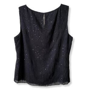 Talbots Women Silk Sequin Black Tank Shell Top 10 Cocktail Party NYE Occasion