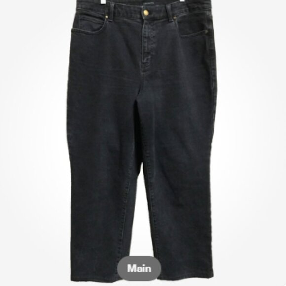 Talbots Women Size 14 Relaxed Jean Tapered Leg High Waist Distressed Black Denim