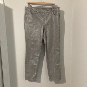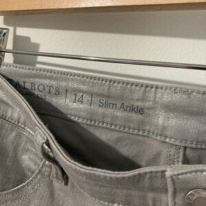 Talbots Women Size 14 Slim Grey Ankle Pant Silver Jeans Cropped Fancy Slimming