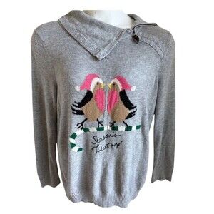 Talbots Seasons Tweetings Birds Holiday Sweater M Gray